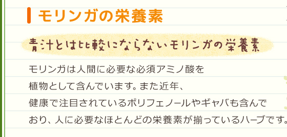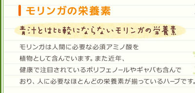 モリンガはこれほどの成分を誇りながら、自然植物なので医薬品ではありません。